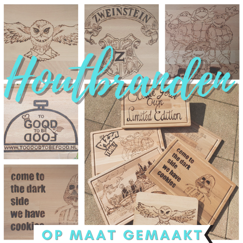 Wij bieden volledig custom houtbranden en houtgravures, geheel naar jouw eigen ontwerp. Met onze houtbrander branden we de bovenste lagen van het hout weg, waardoor jouw persoonlijke afbeelding of tekst duidelijk en duurzaam zichtbaar wordt.