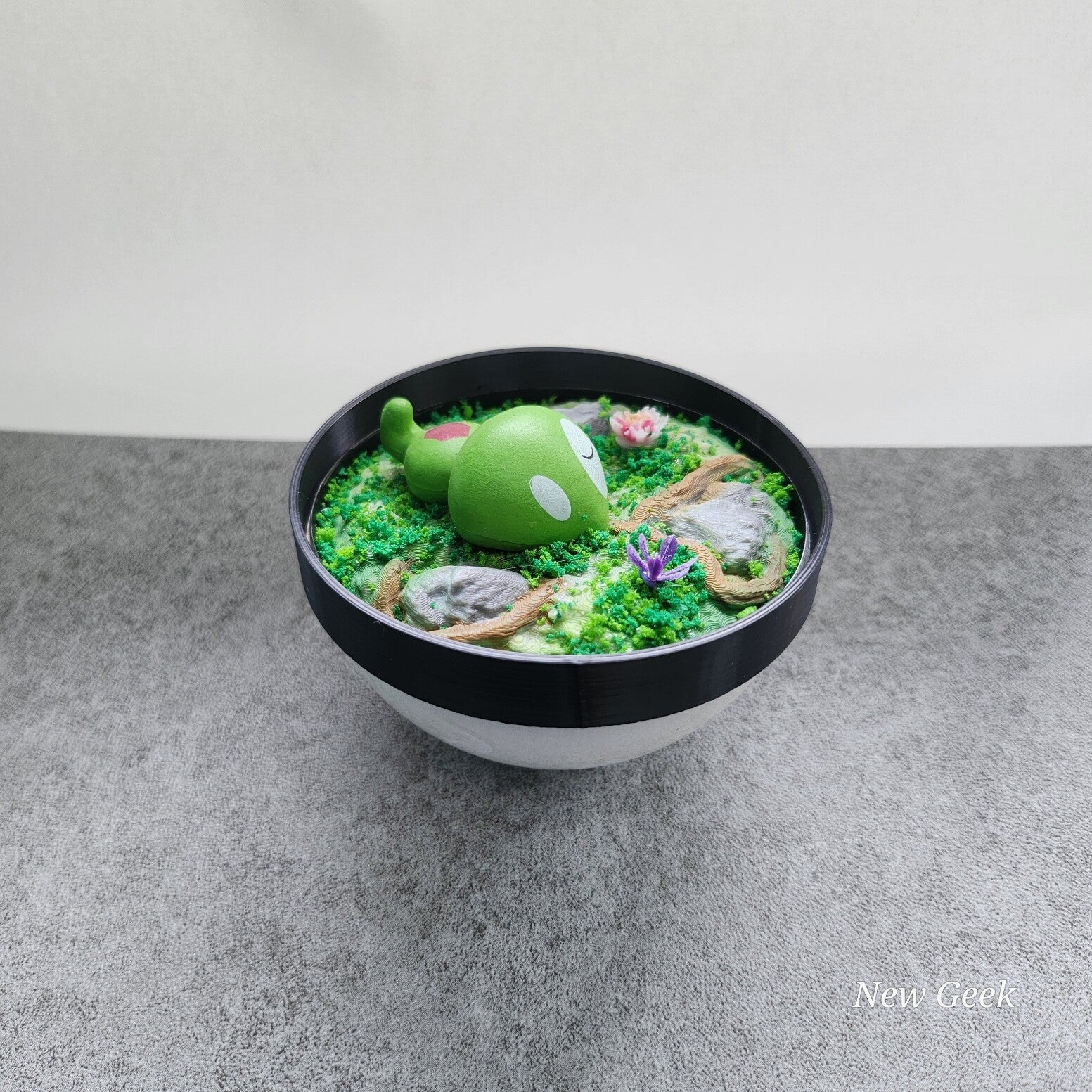 Laat je betoveren door de wereld van Pocket Terra: een handgemaakte, bolvormige diorama van 7 cm in diameter – klein genoeg om in je hand te passen, groot genoeg om je fantasie te prikkelen. In elke Terra leeft een uniek miniatuurlandschap, zorgvuldig ontworpen rondom het originele figuur dat erin schittert.
