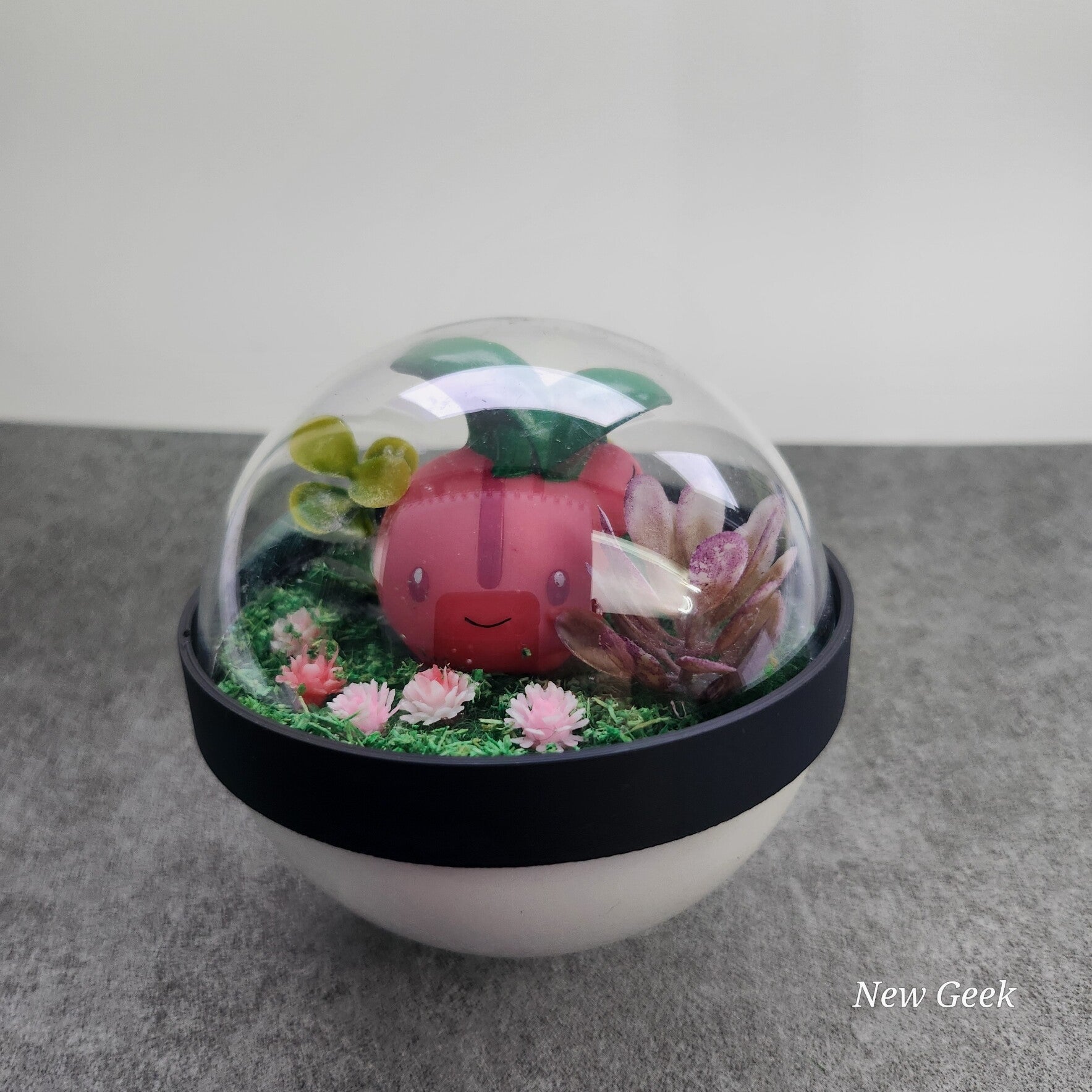 Elke Pocket Terra is een miniatuurwereld op maat, afgestemd op het karakter van het originele figuur. Van serene valleien tot futuristische ruïnes of weelderige jungles – deze bol bevat een compleet verhaal in visuele vorm.
