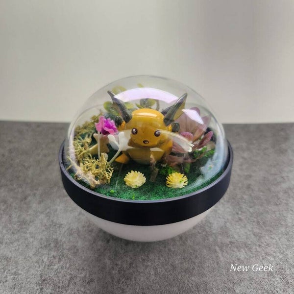 Elke Pocket Terra is een miniatuurwereld op maat, afgestemd op het karakter van het originele figuur. Van serene valleien tot futuristische ruïnes of weelderige jungles – deze bol bevat een compleet verhaal in visuele vorm.