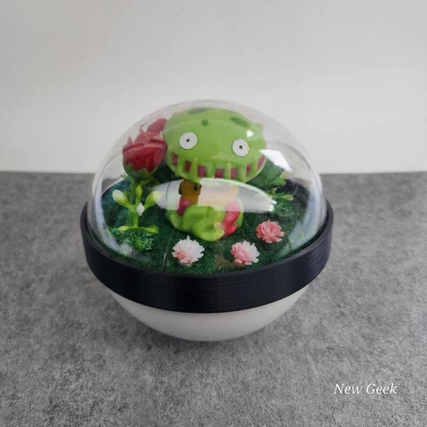 Elke Pocket Terra is een miniatuurwereld op maat, afgestemd op het karakter van het originele figuur. Van serene valleien tot futuristische ruïnes of weelderige jungles – deze bol bevat een compleet verhaal in visuele vorm.