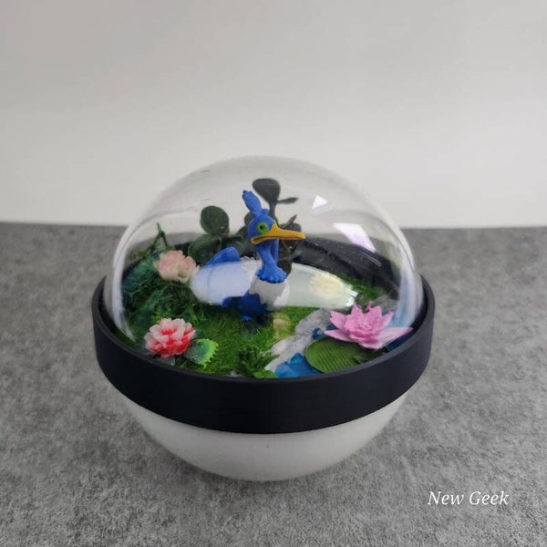 Elke Pocket Terra is een miniatuurwereld op maat, afgestemd op het karakter van het originele figuur. Van serene valleien tot futuristische ruïnes of weelderige jungles – deze bol bevat een compleet verhaal in visuele vorm.