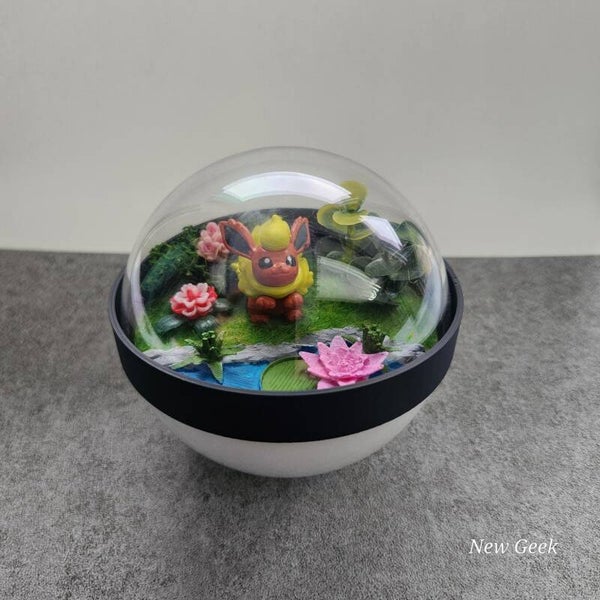 Elke Pocket Terra is een miniatuurwereld op maat, afgestemd op het karakter van het originele figuur. Van serene valleien tot futuristische ruïnes of weelderige jungles – deze bol bevat een compleet verhaal in visuele vorm.