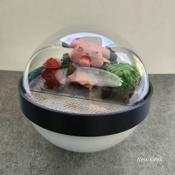 Elke Pocket Terra is een miniatuurwereld op maat, afgestemd op het karakter van het originele figuur. Van uitgestrekte valleien tot futuristische ruïnes of weelderige jungles – deze bol vertelt een compleet verhaal in visuele vorm.