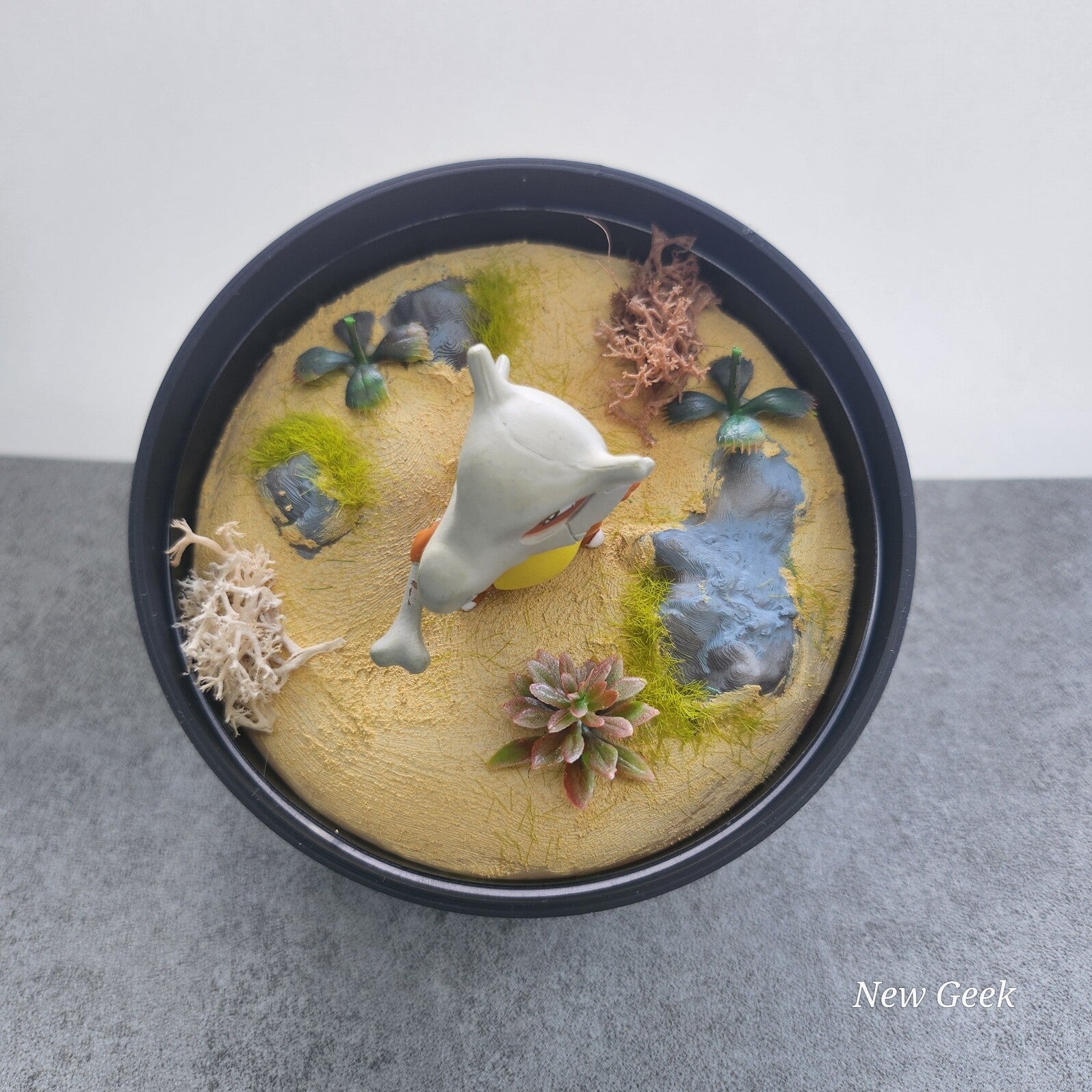 Elke Pocket Terra is een miniatuurwereld op maat, afgestemd op het karakter van het originele figuur. Van uitgestrekte valleien tot futuristische ruïnes of weelderige jungles – deze bol vertelt een compleet verhaal in visuele vorm.