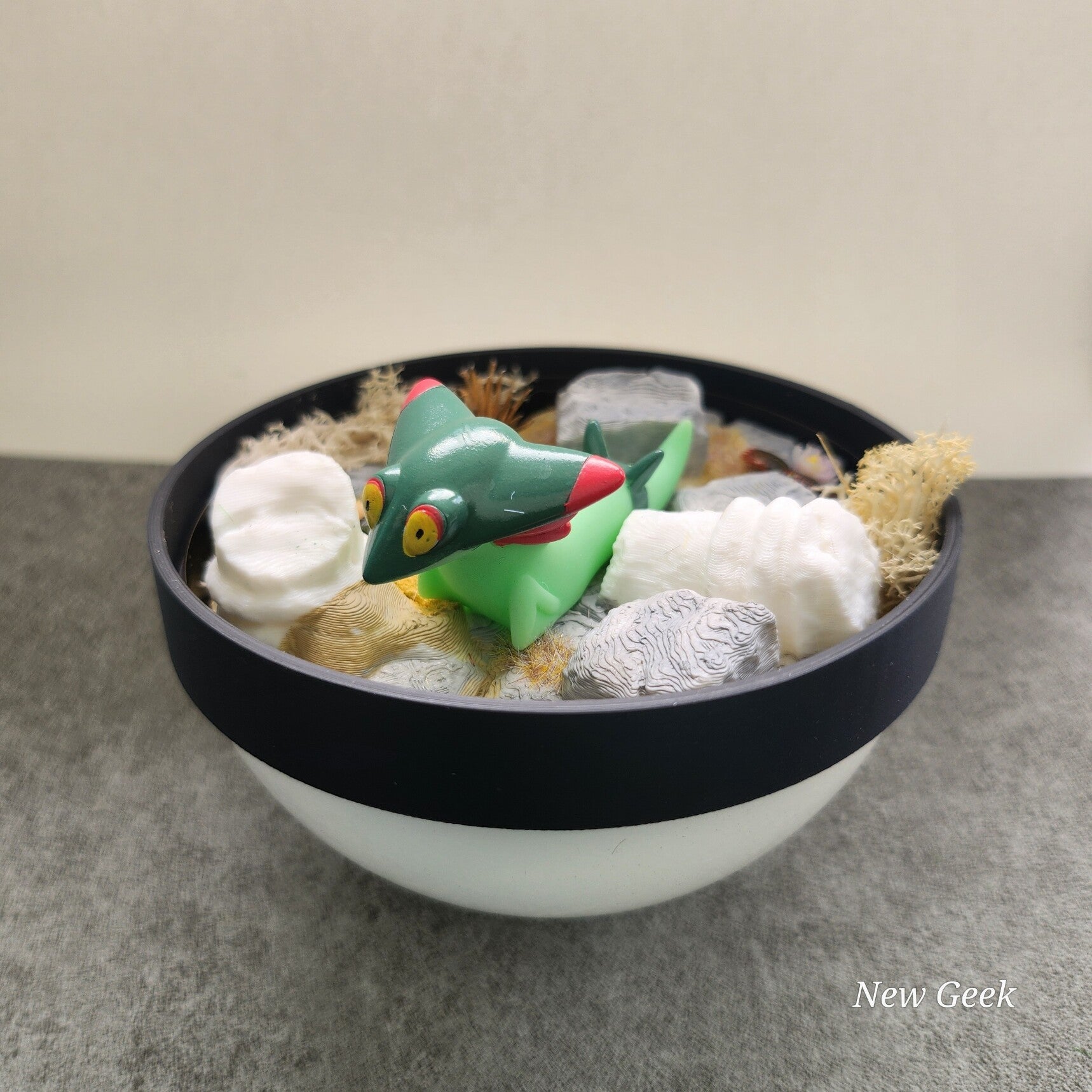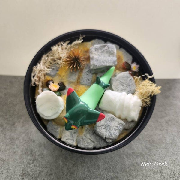 Elke Pocket Terra is een miniatuurwereld op maat, afgestemd op het karakter van het originele figuur. Van uitgestrekte valleien tot futuristische ruïnes of weelderige jungles – deze bol vertelt een compleet verhaal in visuele vorm.