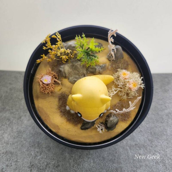 Elke Pocket Terra is een miniatuurwereld op maat, afgestemd op het karakter van het originele figuur. Van uitgestrekte valleien tot futuristische ruïnes of weelderige jungles – deze bol vertelt een compleet verhaal in visuele vorm.