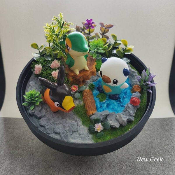 Deze royale Pocket Terra van 14 cm is ontworpen voor het ultieme trio: drie figuren uit dezelfde beginwereld, elk met hun eigen element en persoonlijkheid. Denk aan vuur, water, natuur – elk met een eigen flair, samengebracht in een landschap dat hun krachten weerspiegelt en versterkt.