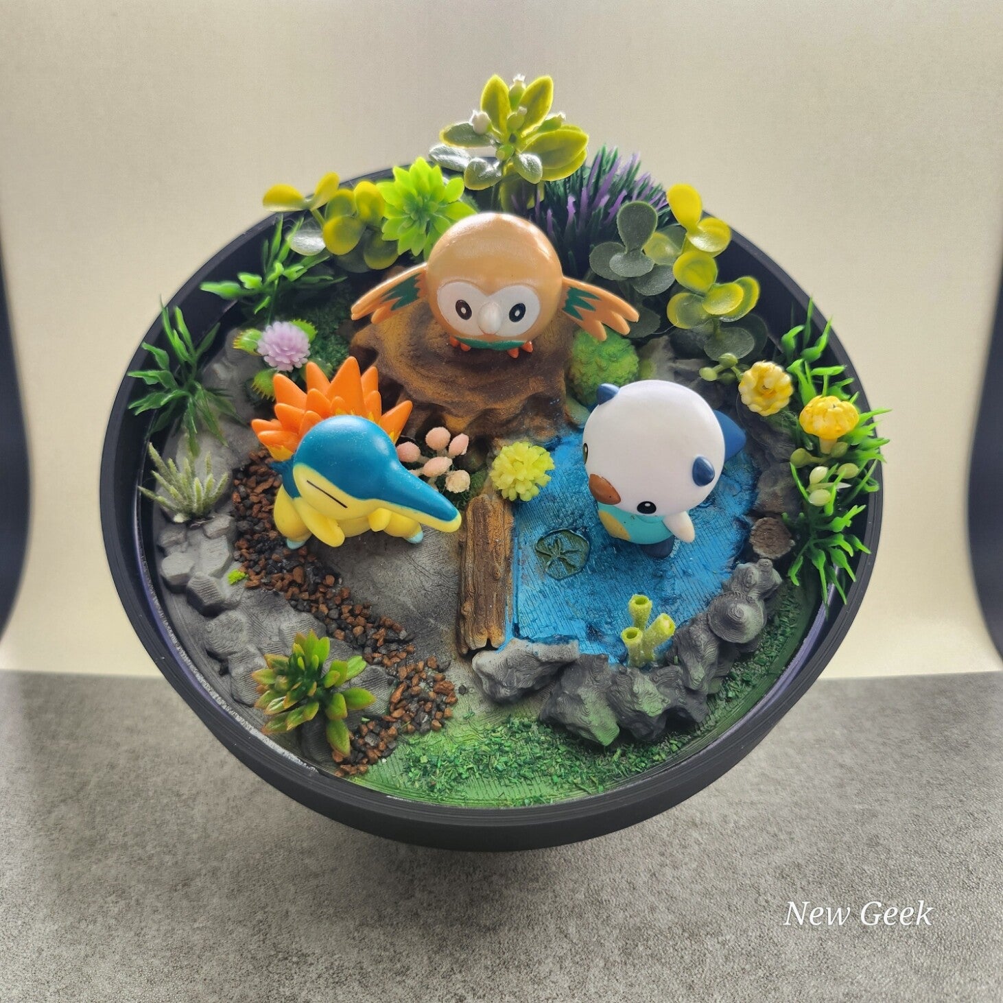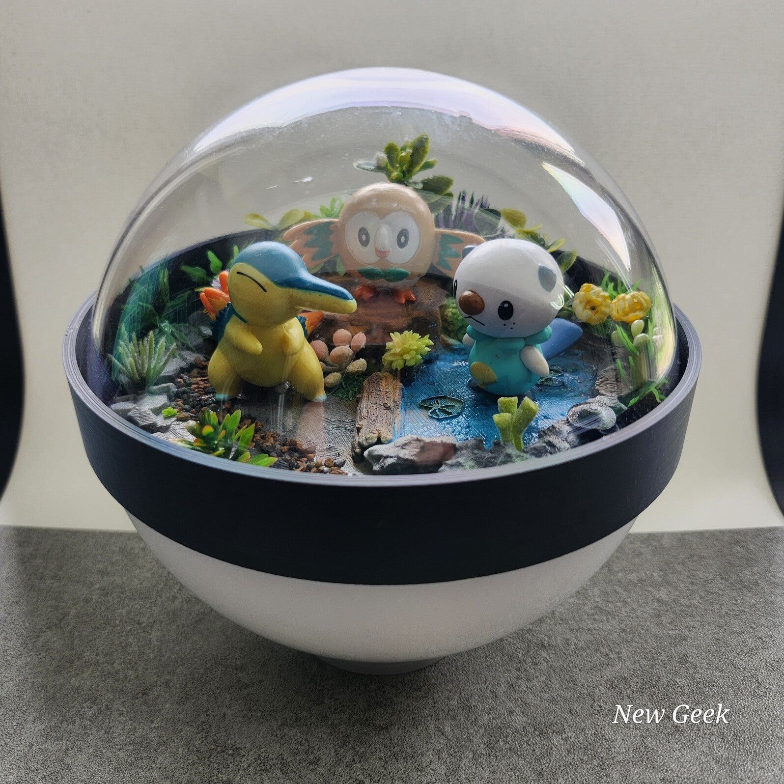 Deze royale Pocket Terra van 14 cm is ontworpen voor het ultieme trio: drie figuren uit dezelfde beginwereld, elk met hun eigen element en persoonlijkheid. Denk aan vuur, water, natuur – elk met een eigen flair, samengebracht in een landschap dat hun krachten weerspiegelt en versterkt.
