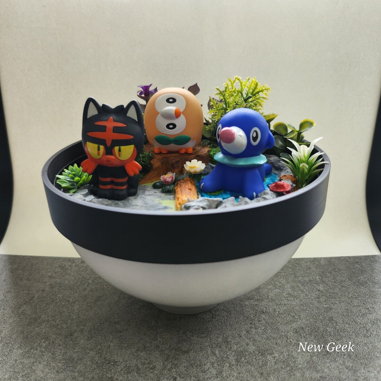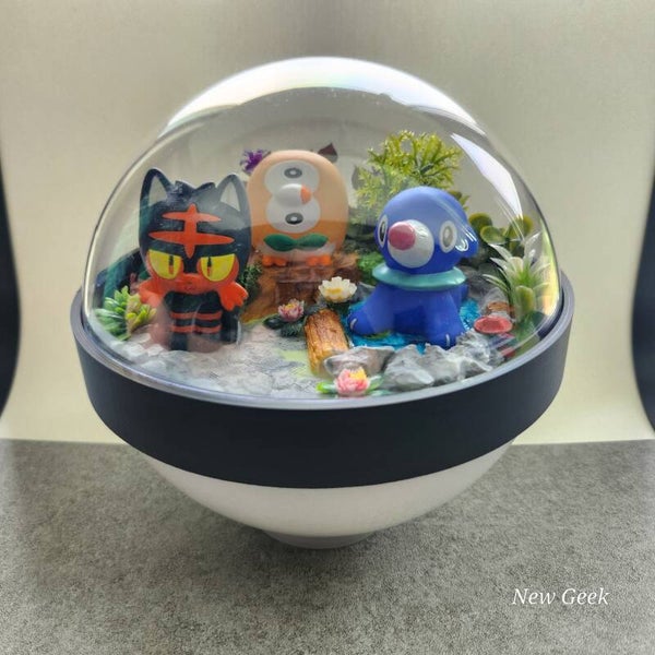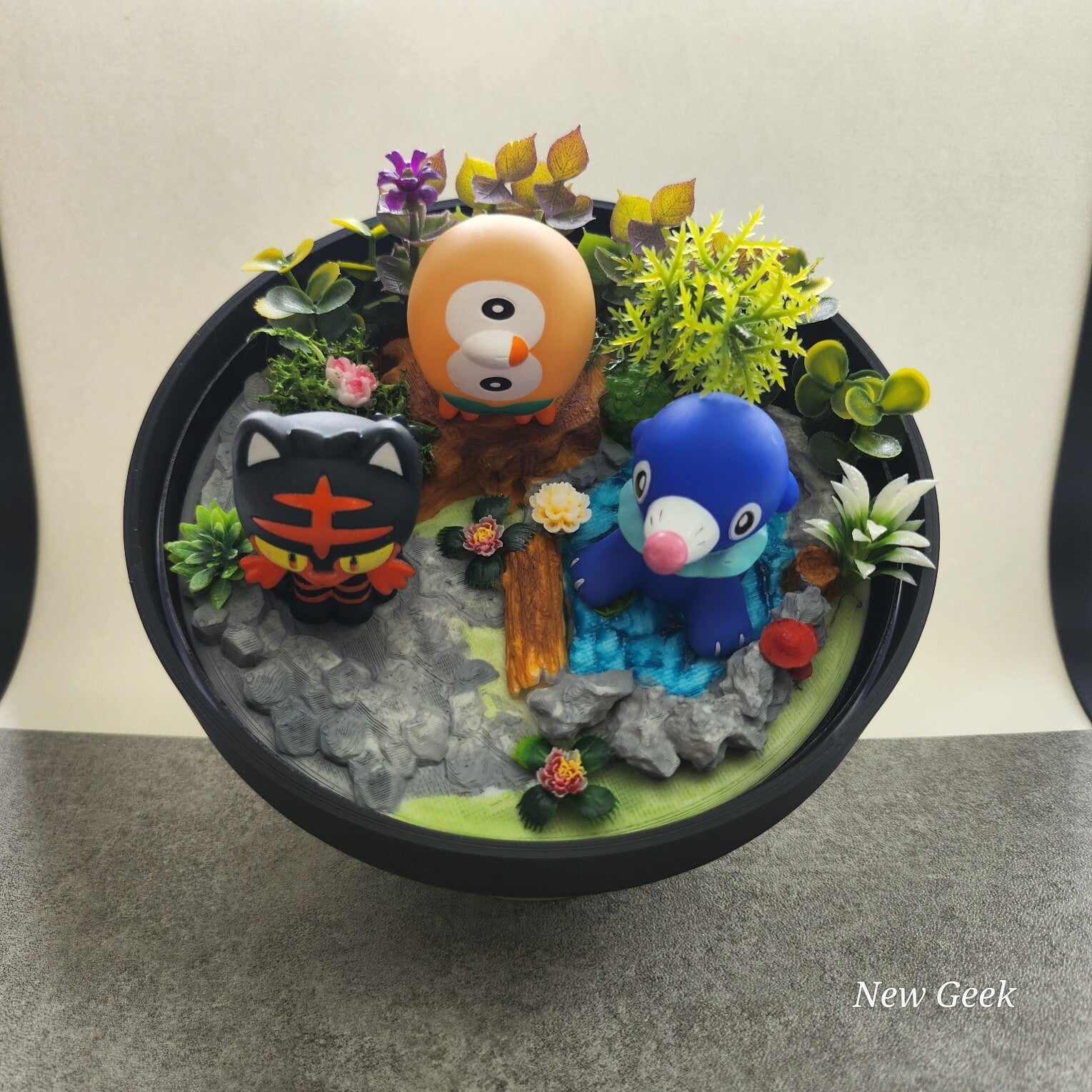 Deze royale Pocket Terra van 14 cm is ontworpen voor het ultieme trio: drie figuren uit dezelfde beginwereld, elk met hun eigen element en persoonlijkheid. Denk aan vuur, water, natuur – elk met een eigen flair, samengebracht in een landschap dat hun krachten weerspiegelt en versterkt.