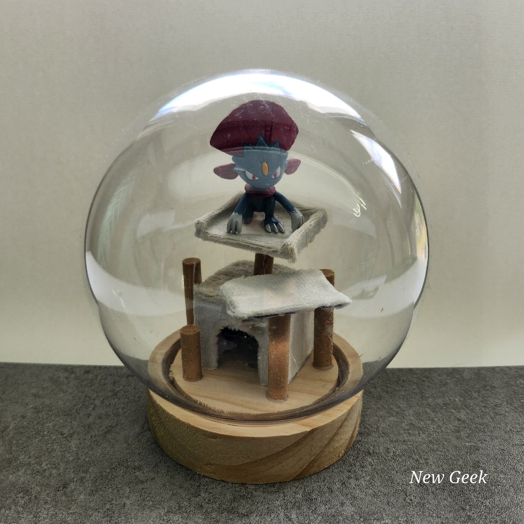 Een droom voor elke sierlijke klimmer! Dit handgemaakte diorama vangt de sfeer van een rustig kattenleven, compleet met een realistische miniatuur krabpaal. Met een zacht slaapplateau bovenin, een krabzuil en een knusse schuilplaats onderin is dit kleine domein perfect voor een figuur dat van comfort én overzicht houdt.