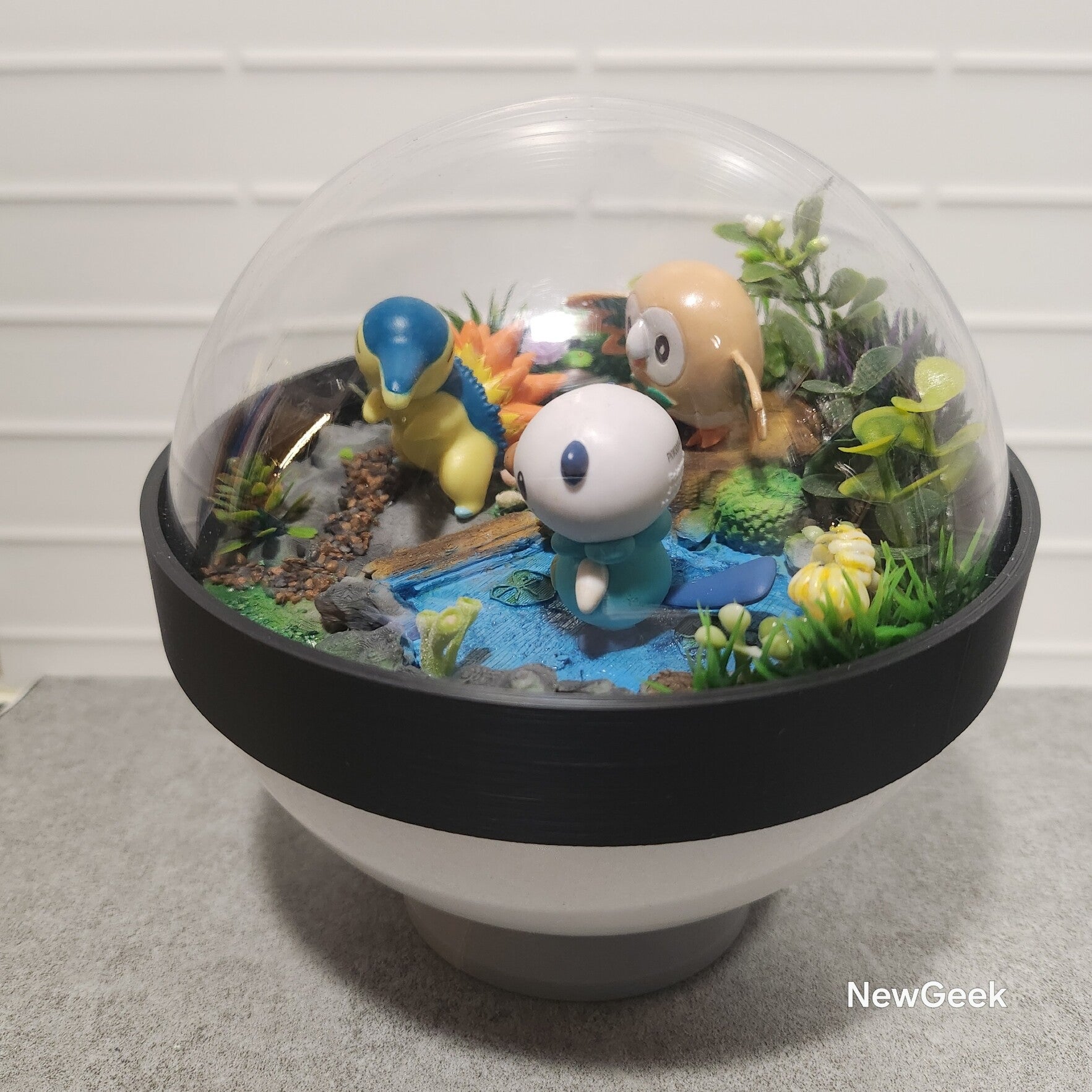 Breng drie verschillende leefwerelden samen in één indrukwekkende Pocket Terra! Met een diameter van ca. 14 cm is dit uitgebreide diorama speciaal ontworpen om de leefomgeving van drie unieke wezens uit Dex-nummer #155, #501 en #722 te combineren in één harmonieuze miniatuurwereld.